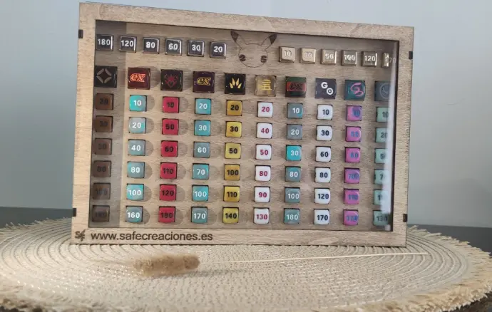Vitrina de tamaño mediano diseñada para coleccionistas, con capacidad para 10 colecciones completas y 2 colecciones especiales (10 dados de 16x16mm y 72 dados de 12x12mm). Fabricada en madera con tapa de acrílico transparente, protege tus dados del polvo mientras permite una exposición elegante y organizada de tus colecciones favoritas.
