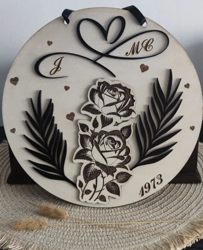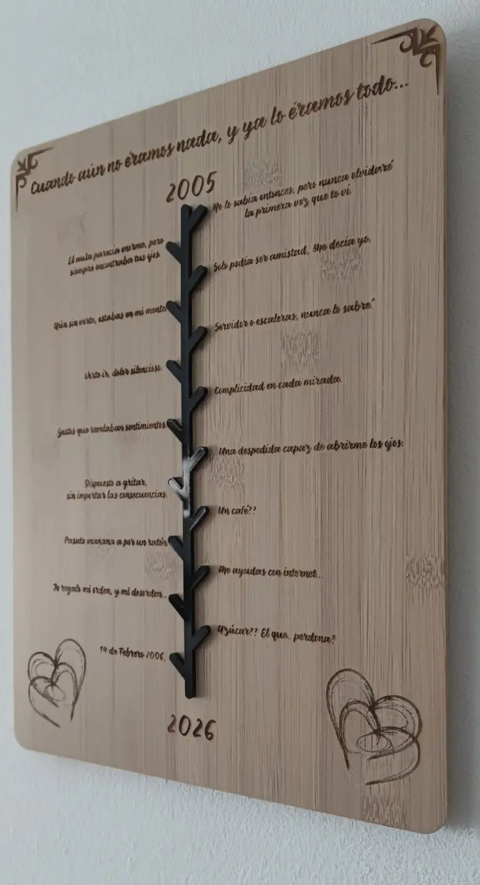 Un detalle único para celebrar un cumpleaños, aniversario o una fecha especial. Fabricado en madera natural con grabado láser y detalles en acrílico que aportan volumen y elegancia.