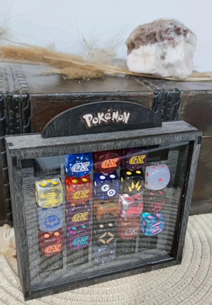 Vitrina compacta de madera con capacidad para 25 dados de 16×16. Cuenta con tapa de acrílico transparente para protegerlos del polvo y al mismo tiempo permitir que se muestren con estilo. Ideal para coleccionistas que quieren organización y exposición elegante de sus dados favoritos.