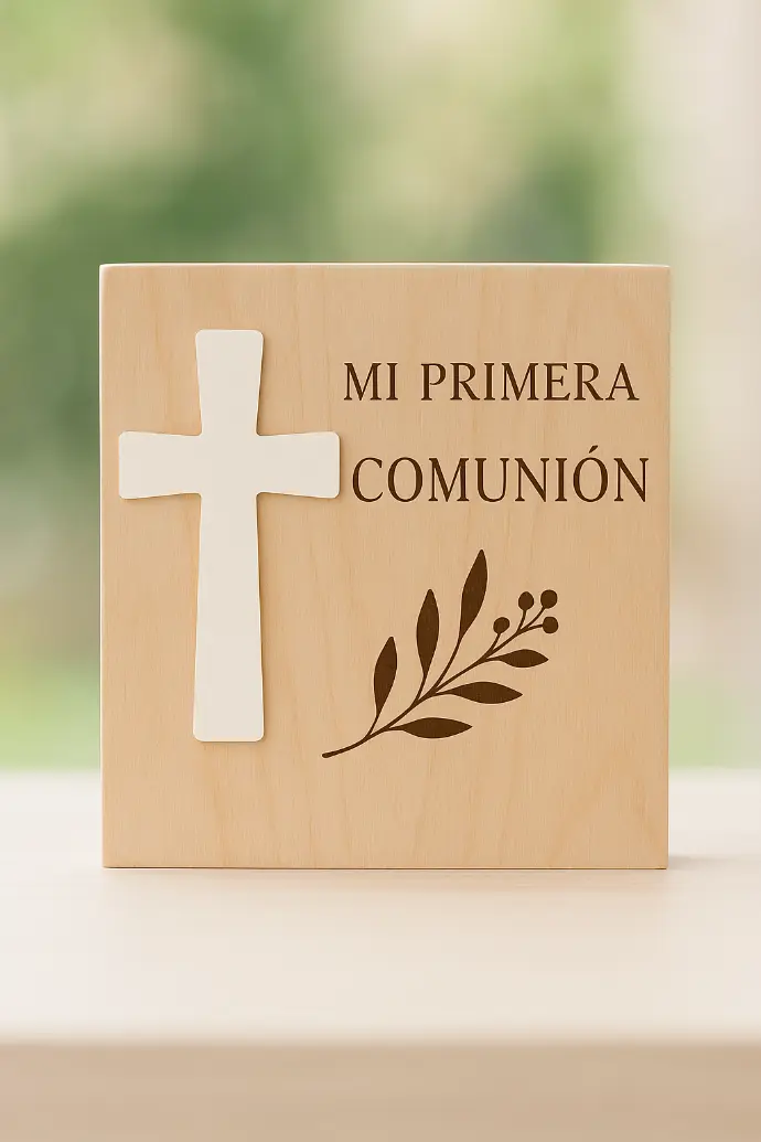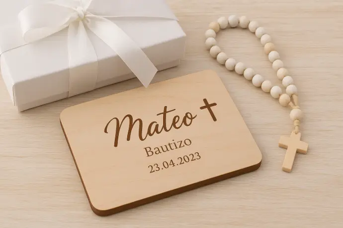 -Cuadro con nombre y fecha de bautizo (madera o acrílico).